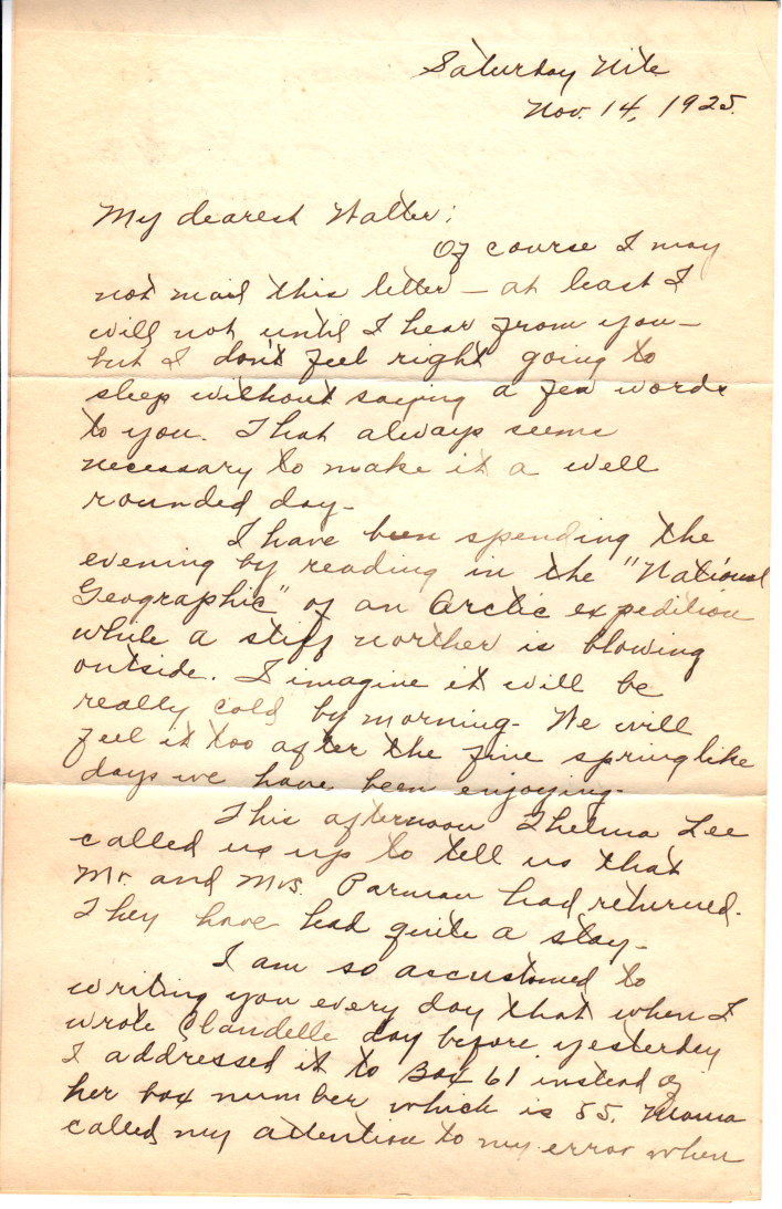 Of course I may not mail this letter – at least I will not until I hear from you – but I don’t feel right going to sleep without saying a few words to you. That always seems necessary to make it a well rounded day.