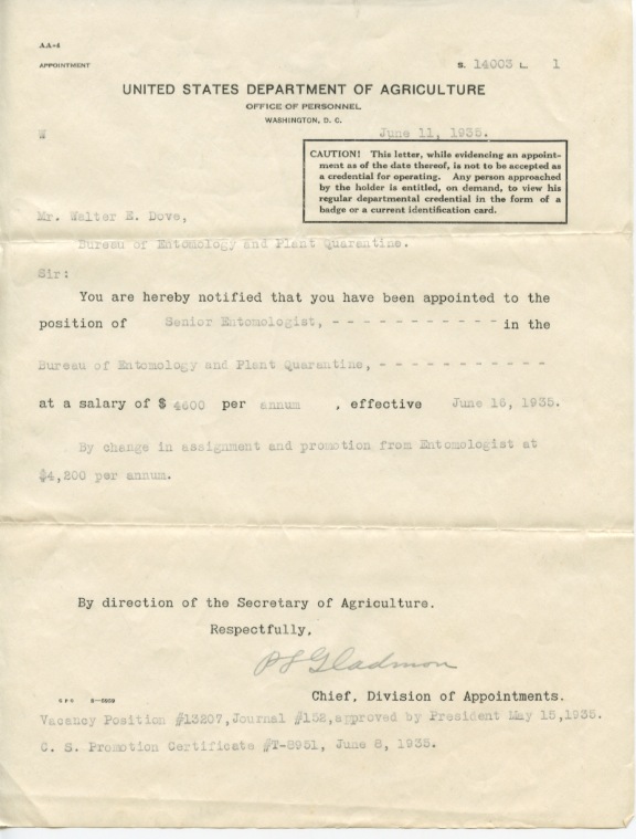June 11, 1935 Walter got another promotion. $4,600 in 1935 equals $77,354 in today’s money. June 11, 1935