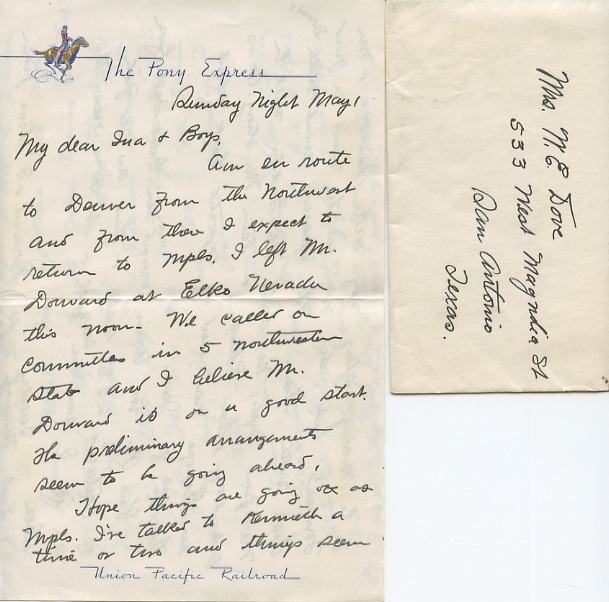 Stationery from the Pony Express/Union Pacific Railroad.