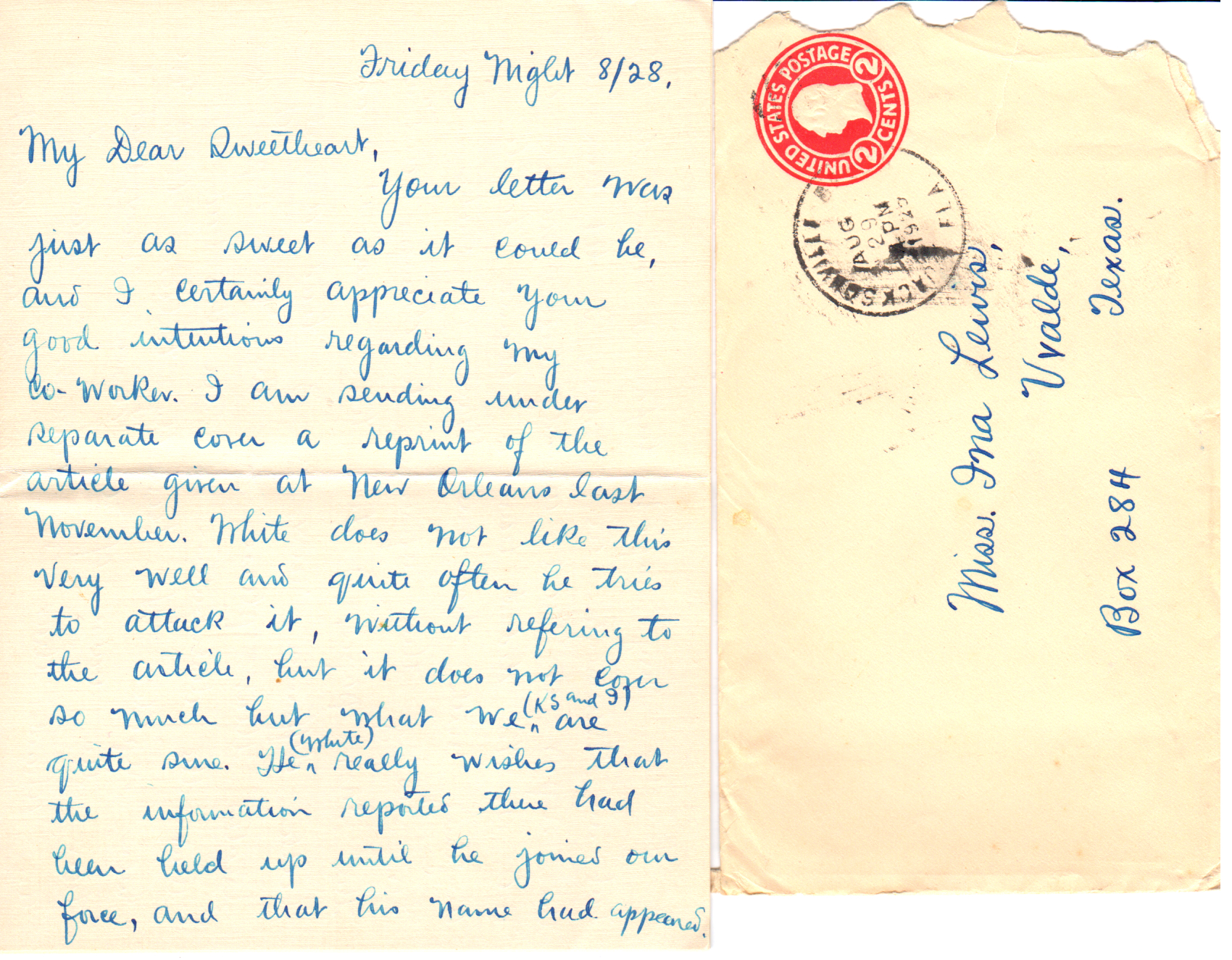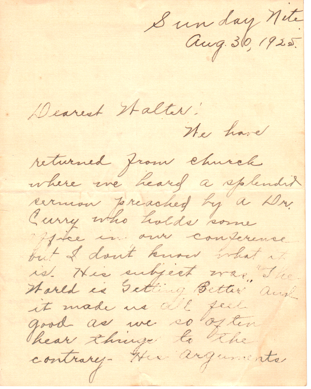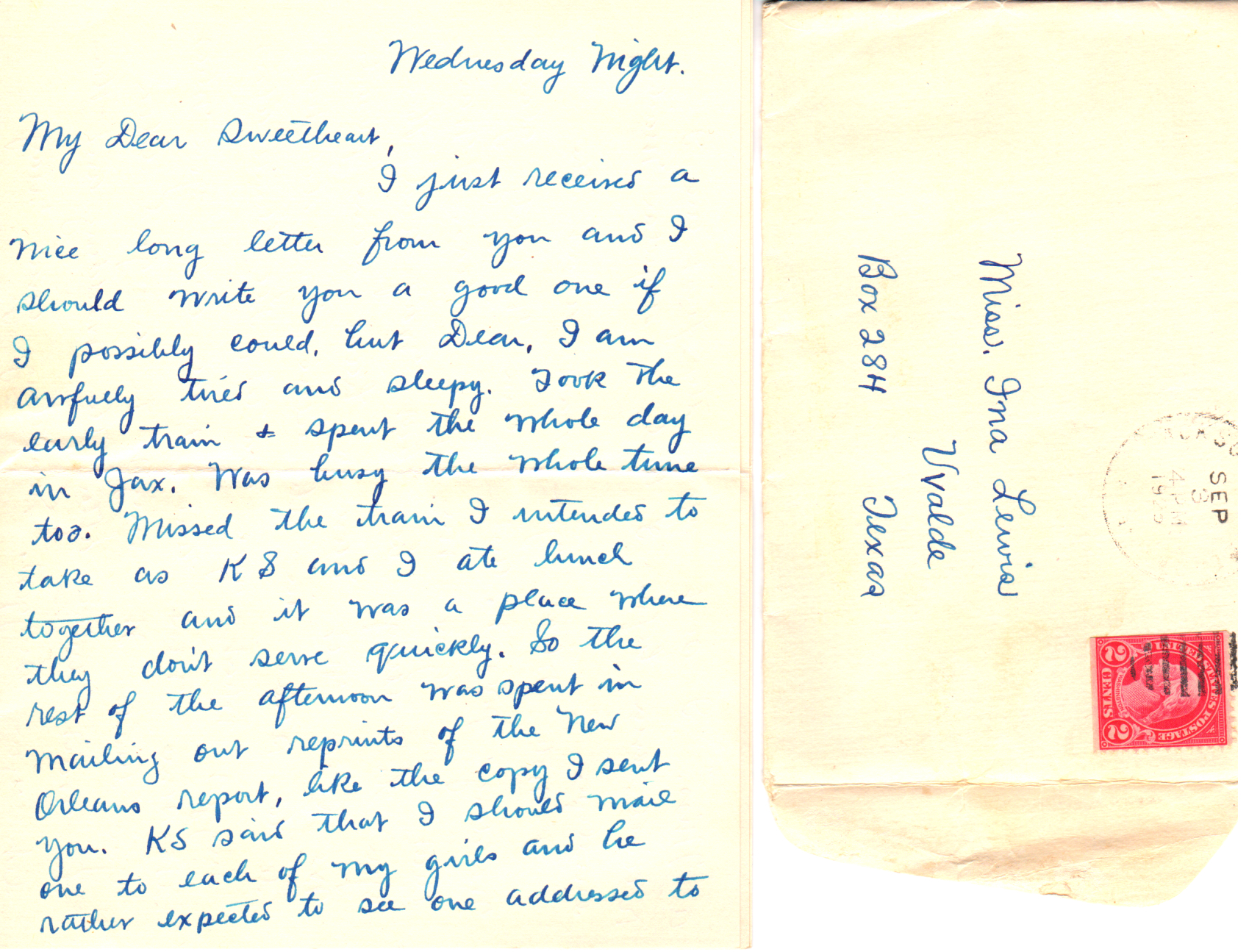 It was awfully nice of you, Dear, to say that you would cook all three meals if I thought my digestion would stand it. You can bet your life that my digestion can stand it and I already know that you are a dandy little cook. Too, your taste is very similar to mine and I know that both of us will enjoy the meals. I guess I’ll have to drink coffee by myself but this will be all right. Mother Lewis is a good cook and from what I know of your cooking, I know that you are a good one too. I am looking forward with pleasure to yours.*