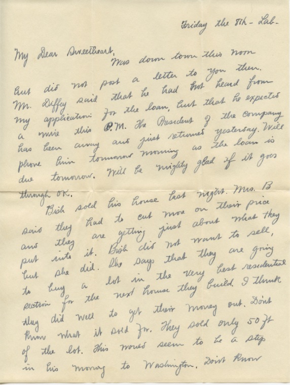 I certainly do miss you too, Dear and I’ll be mighty glad when I see my sweetheart again. It seems ages since you left. The next time I am going with you. If we must part we will go together.