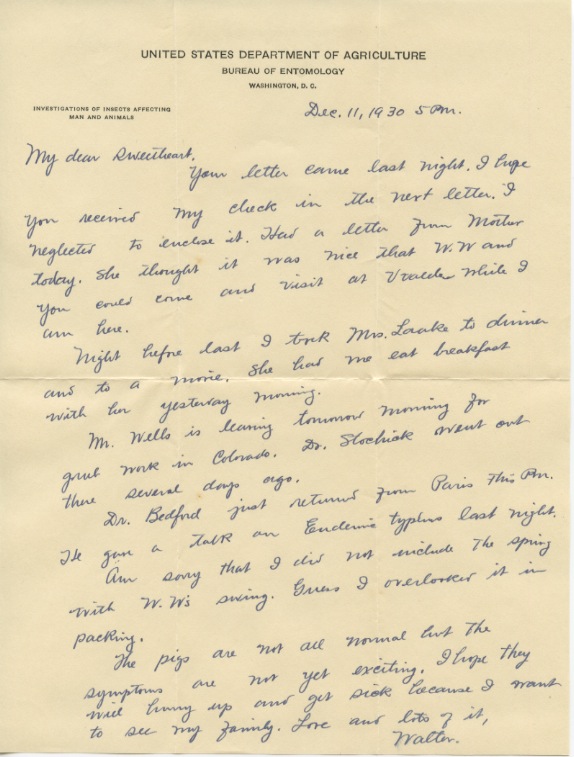 This A.M. Dr. Bedford phoned that he had a patient from near Fort Stockton. Bruce and I went down to see him. He was a sheep man. He had a large number of sores which resemble Delhi Boils or Baghdad sores. I don’t know what they are. This man’s brother-in-law will be in tomorrow. We expect to try and find some trypanosomes. I don’t care to go out to Fort Stockton to study the origin. There are about 12 persons affected in this manner. It looks like we are getting our share of the human side of entomology. Bruce is trying to learn something on the reservoir of relapsing fever, which originates from tick bites in caves.
