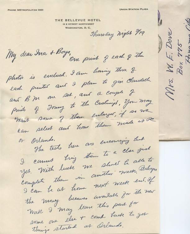 The money on the repellent project $44800 became available today and things will pick up now. The present work on fumigants including tests with the Army will require approximately 2 weeks. At a conference this PM Dr. Armand is willing for Bruce to complete these. They will wire Bruce tomorrow to come into Wash. & if I can see him first I think the job he now has will be consolidated with ours and he will be my second man at Orlando. Bish has been opposing it to Armand, but Armand had agreed to it several days ago. The situation is that a lot of Bureau men are on the end of a limit due to curtailment & Armand is now looking for places for them. Our work will be filled by transfer within the division except for Mr. Glass & 4 juniors who come from the outside. Cushing will then consider transfers of others to fill temporary places vacated by men who are coming to our projects.