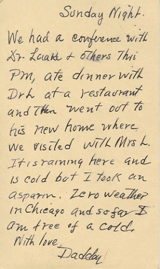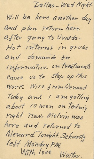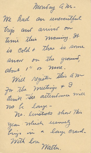 Today I have been attending the scientific meetings and have found them very interesting. Mr. Bishopp came this morning. I had expected Mr. Parman too, for he is on two papers but I guess Mr. Bishopp will present them.