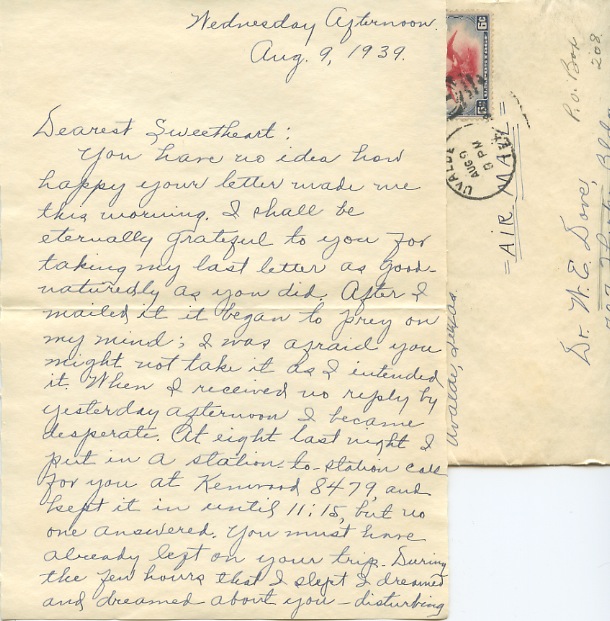 You have no idea how happy your letter made me this morning. I shall be eternally grateful to you for taking my last letter as good-naturedly as you did. After I mailed it it began to prey on my mind; I was afraid you might not take it as I intended it. When I received no reply by yesterday afternoon I became desperate. At eight last night I put in a station-to-station call for you at Kenwood 8479, and kept it in until 11:15, but no one answered. You must have already left on your trip. During the few hours that I slept I dreamed and dreamed about you – disturbing dreams. If your letter had not come this morning you would have received a telegram.