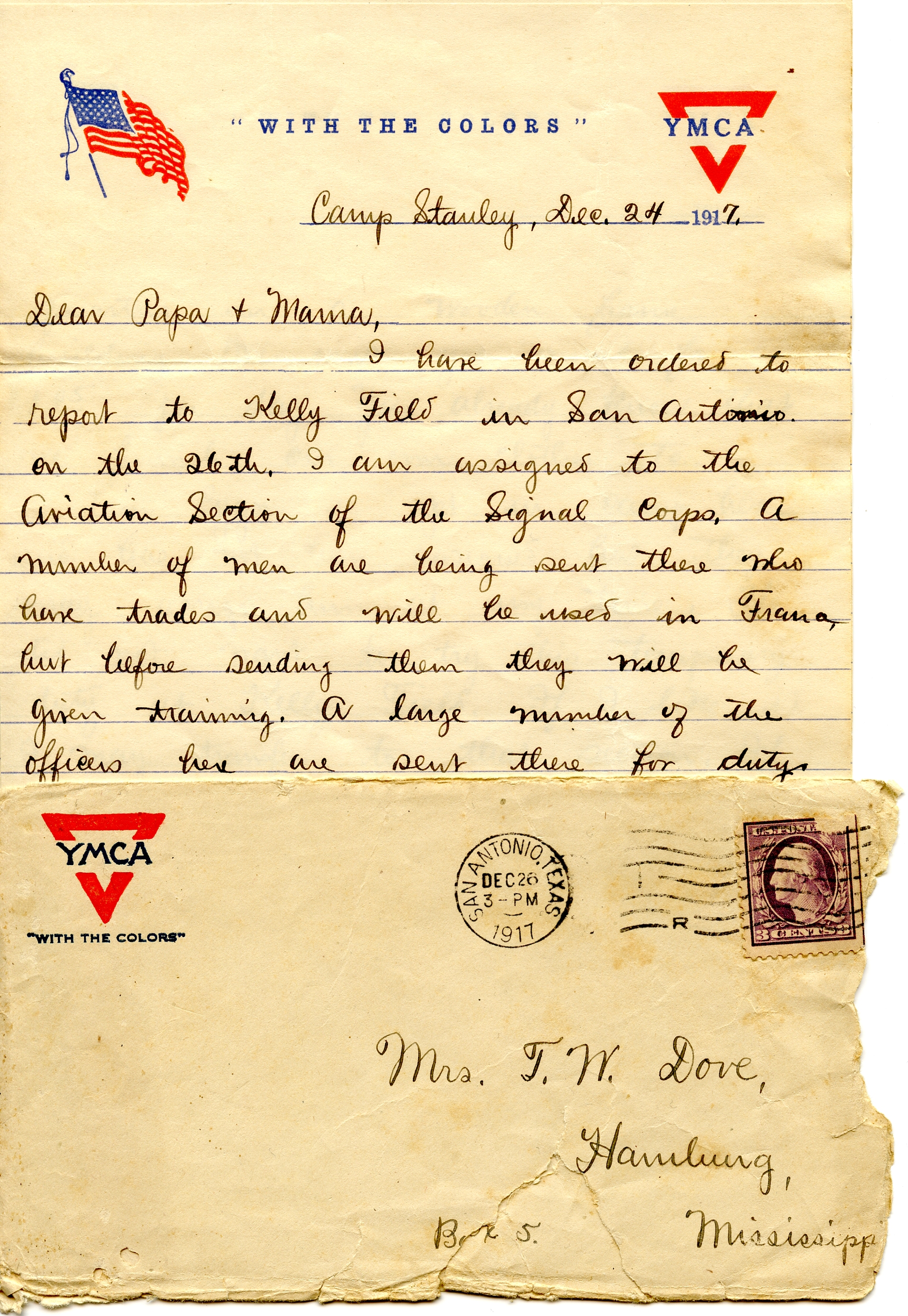 Last night we took the planes out of the hangar, borrowed a piano from the Red Cross, found a few violin players in the “Flight,” and had a real entertainment. Had a few Mississippi Negroes to dance for us, but as I expected, our hypnotist could not hypnotize them. A couple of the Y.M.C.A. ladies came down and seemed to enjoy the little show.