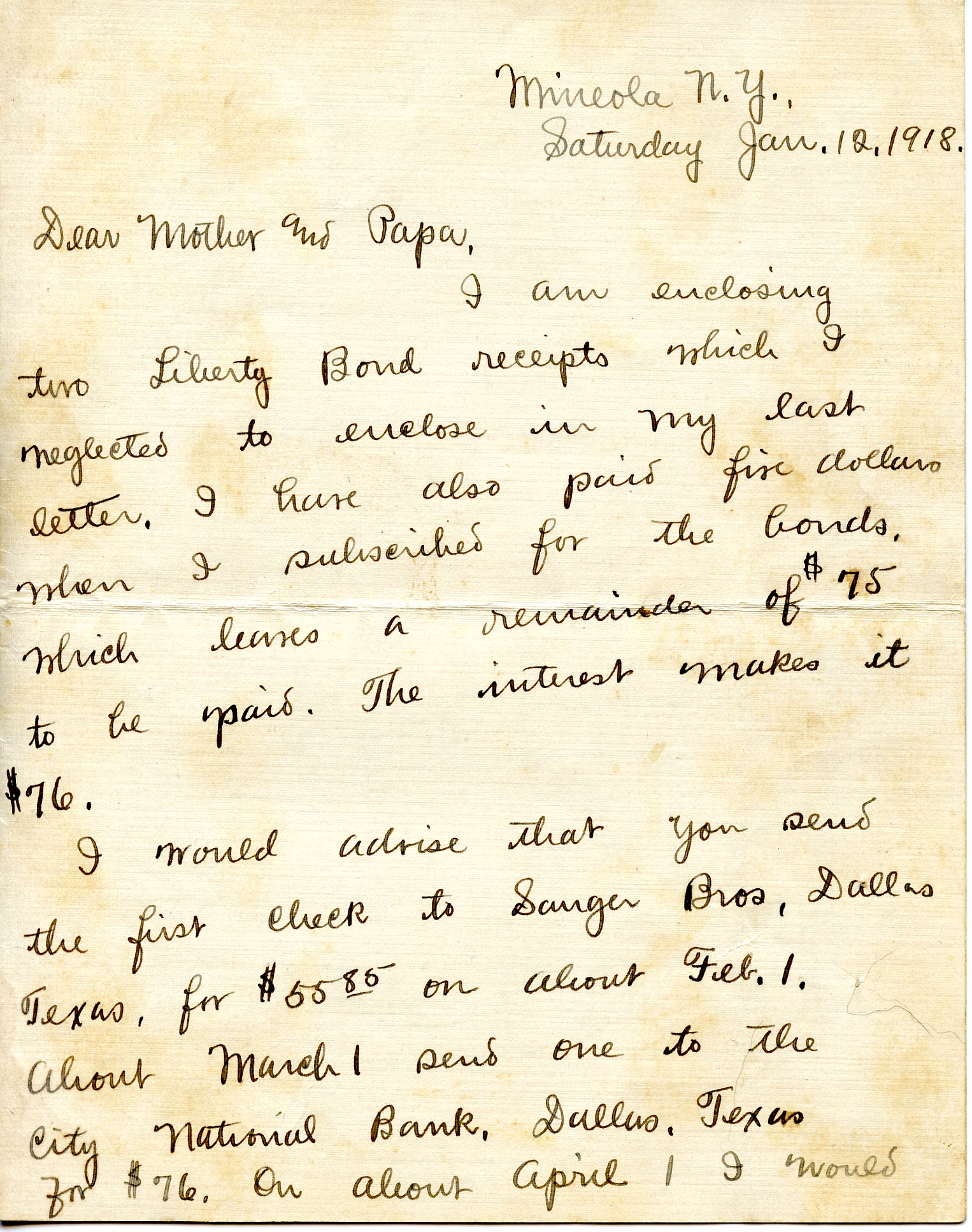 Dear Mother and Father,