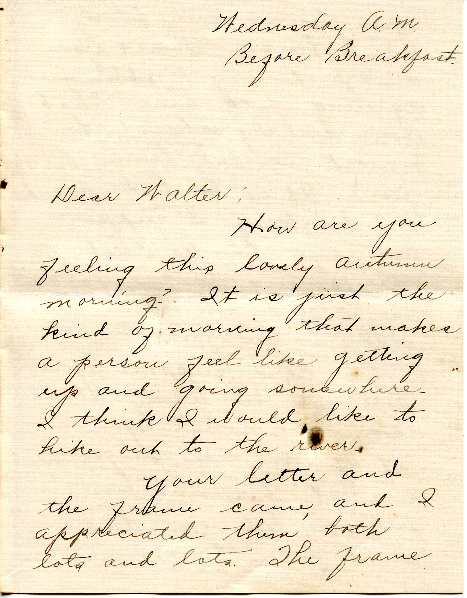 I will say, though, that I have admired you from the very moment I met you at the breakfast table at Reagan Wells, and have been admiring you more ever since. Not one time have you lowered yourself in my estimation, but instead you have gone higher. I have had confidence in you from the very start and now I have confidence enough to feel I shall never have reason to lose confidence in you. Guess I’ll have to confess that I like you mighty well. I like you better and admire you more than any other young man with whom I have ever gone. I know that seems to be saying a great deal, but it is true. Furthermore, I have given you more encouragement than I ever have anyone else (with the one exception that you know). Several times, after writing you a letter in which I revealed my feelings more than I thought I should, I have come very near tearing the letter to pieces – in fact, I did do it one time. I have been afraid so many, many times that you would think I was too easy to get acquainted with and that I gave everyone the encouragement that I gave you, but it isn’t true. It’s just because I admired you, liked you, enjoyed your letters so much, and felt like, as you said, we had so many things in common.
