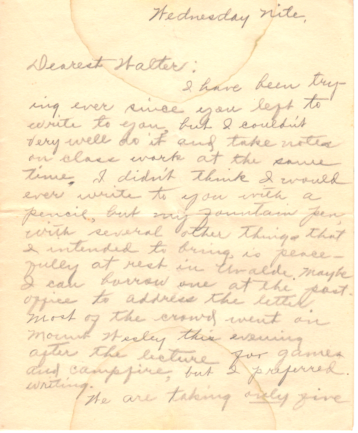 Walter, you don’t know how much I wish for you tonight. The moon is wonderful, and everything would be ideal if — Well, the moon will shine again, and you are coming back too, and then, won’t we be happy? I am happy now thinking of the past two wonderful months and of the many, many many happy months we have ahead of us, when we can be together always.